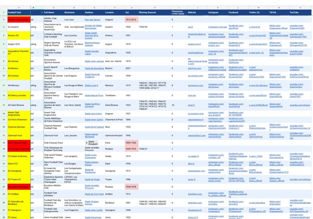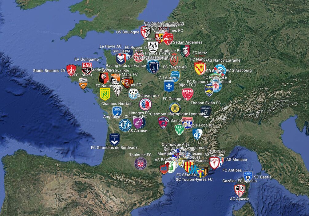 - Google My Maps: Custom interactive layer of all-time Ligue 1 clubs